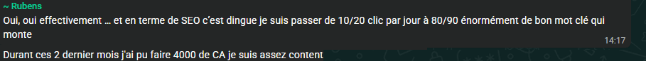 "J'ai indexé ma boutique le 24 décembre.15 jours après j'ai ma 1ere vente juste avec le SEO"